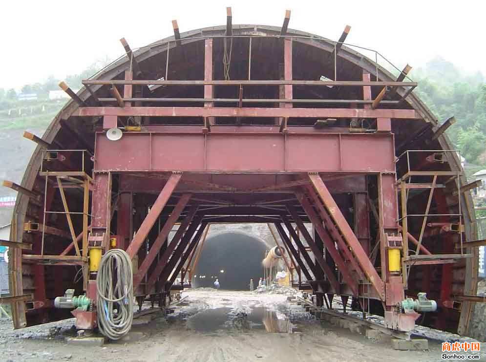 主要用于隧道,引水洞,二襯(二次襯砌)混凝土澆注使用,臺車又分為兩種結構一種是穿行式另一種是針梁式,臺車主要由龍門架和模板組成,龍門架主要承重,模板是根據隧道形狀設計的。它具有自動行走,液壓自動定位脫模(可實現上,下,左,右移動)的優點。